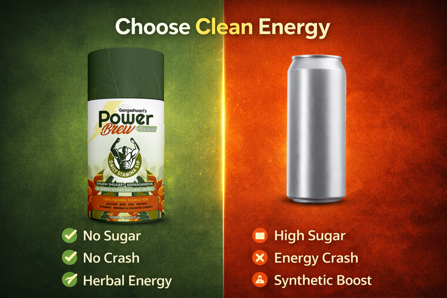 Gangeshwari Power brew is a caffeine-free energy drink that is formulated with a combination of natural ingredients. It is an ideal alternative to conventional energy drinks that are often loaded with sugar and caffeine, which can lead to energy crashes and other negative side effects.