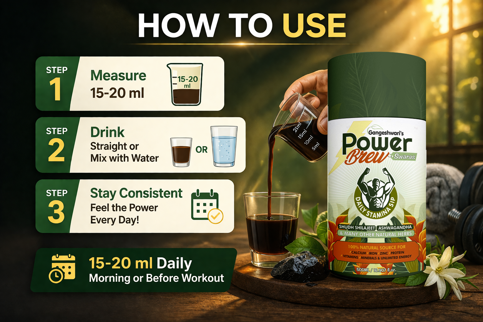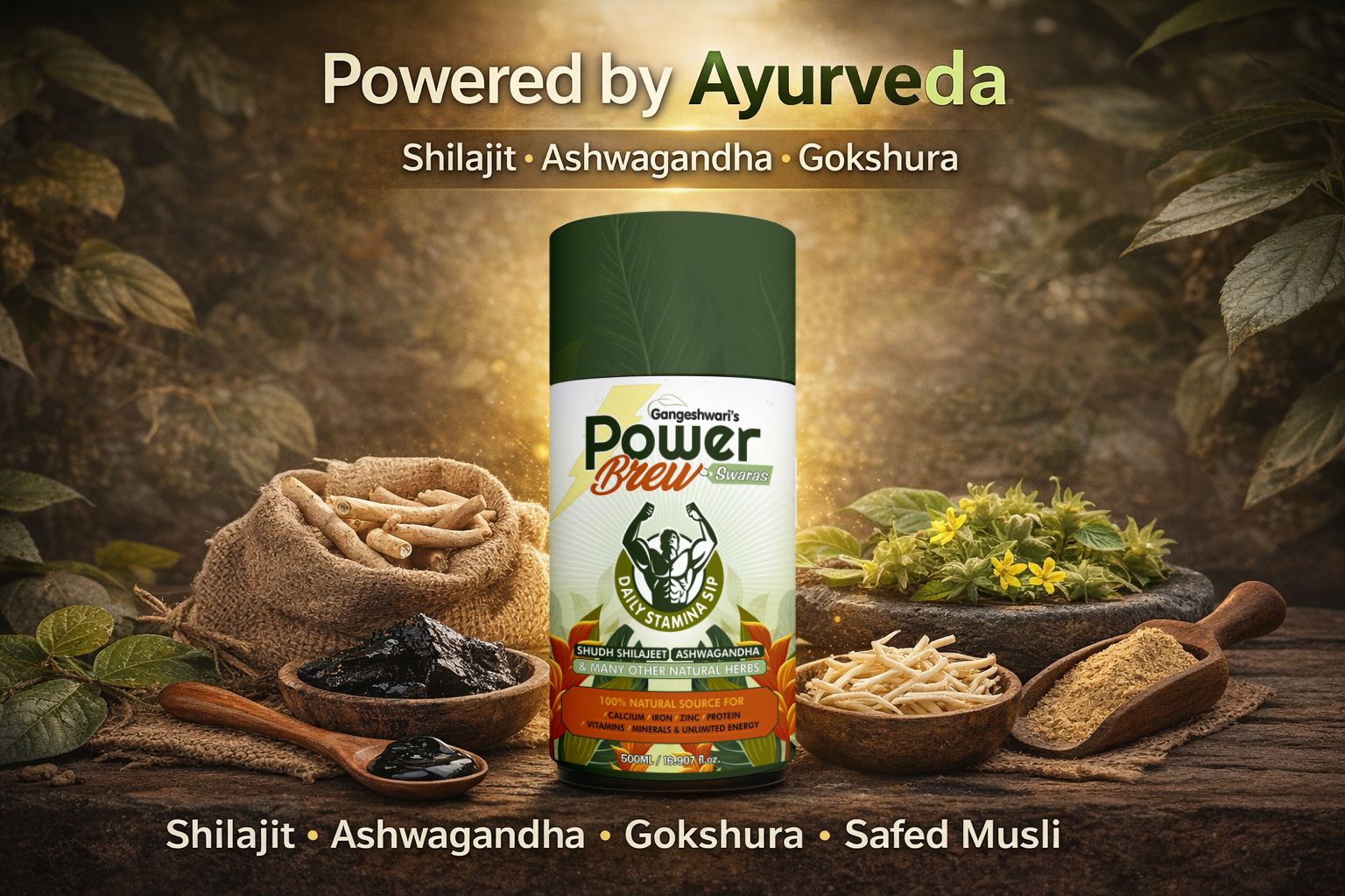 Gangeshwari’s Power Brew Enriched With Purest Form of Shilajeet – Sugar Free – 450ML